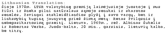Lithuania, 1969, directed by Albinas Sukelis and Robertas Verba, B/W, 20 minutes, sound, Lithuanian dialogue, no subtitles.