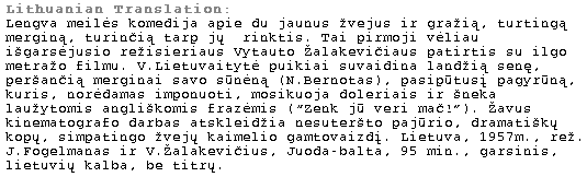 Lithuania, 1957, directed by J.Fogelman and Vytautas Zalakevicius, B/W, 95 minutes, sound, Lithuanian dialogue, no subtitles.